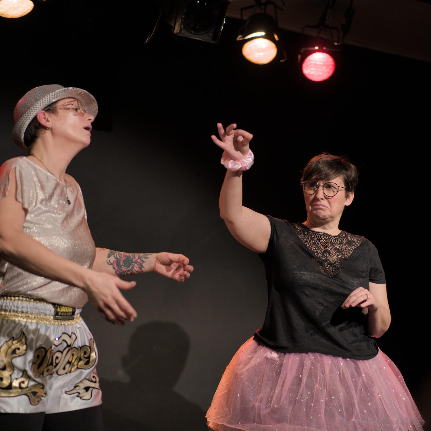 Les styles d’impros se succèdent,“doublage de film américain” par exemple où un membre du duo fait les gestes et l’autre membre dit le texte qui doit correspondre ; ou style “abécédaire” qui nécessite une grande écoute mutuelle et une capacité d’invention pour débuter sa réplique avec des lettres aussi difficiles que le H ou le K par exemple. Pour certains styles, l’arbitre accélère le rythme, ce qui demande une adaptation rapide aux personnages.