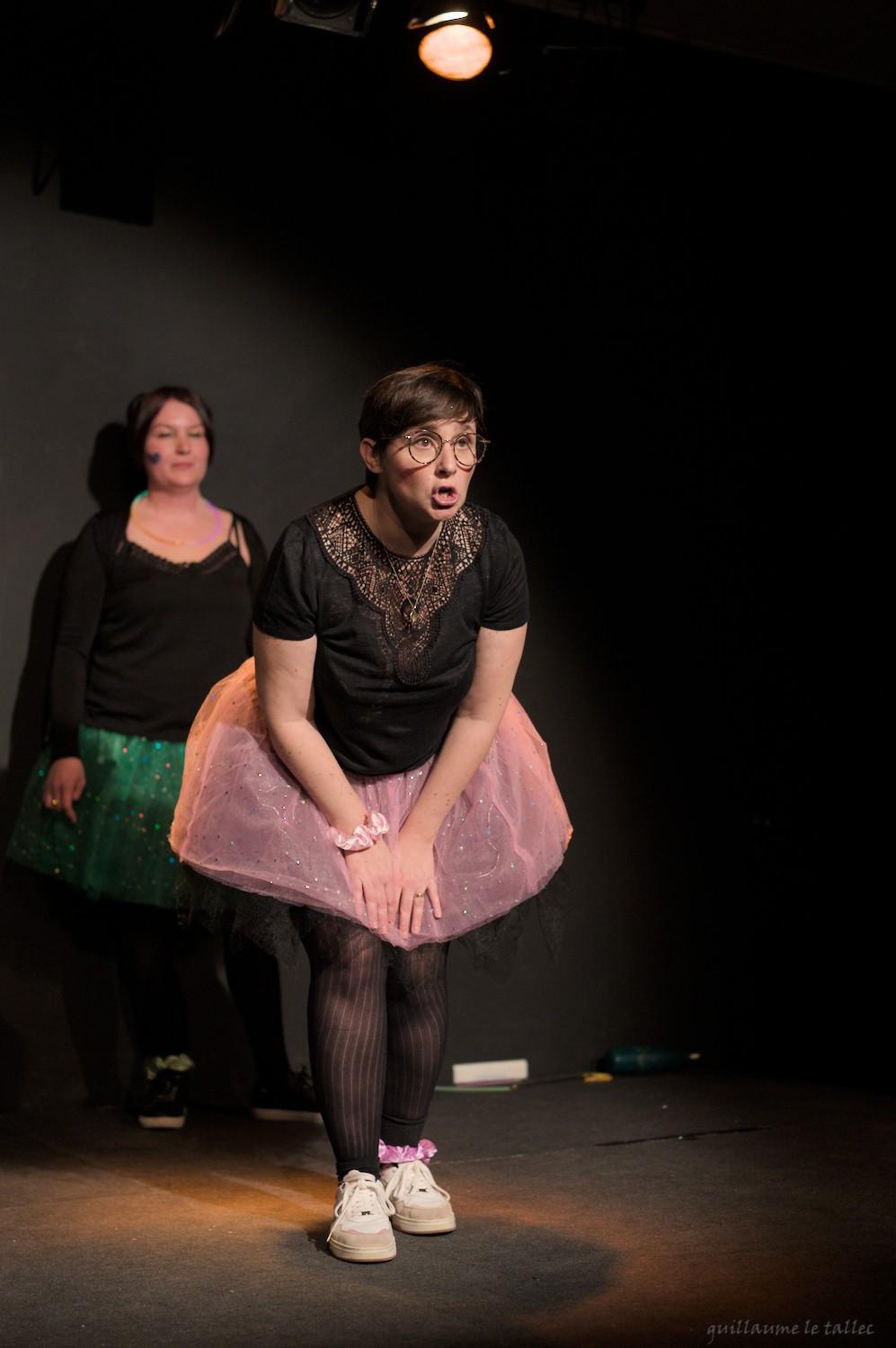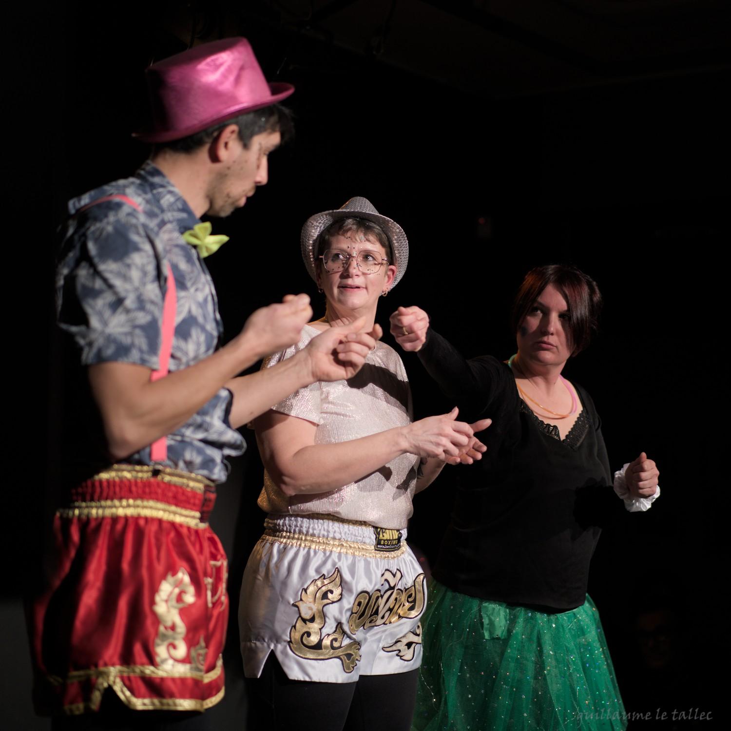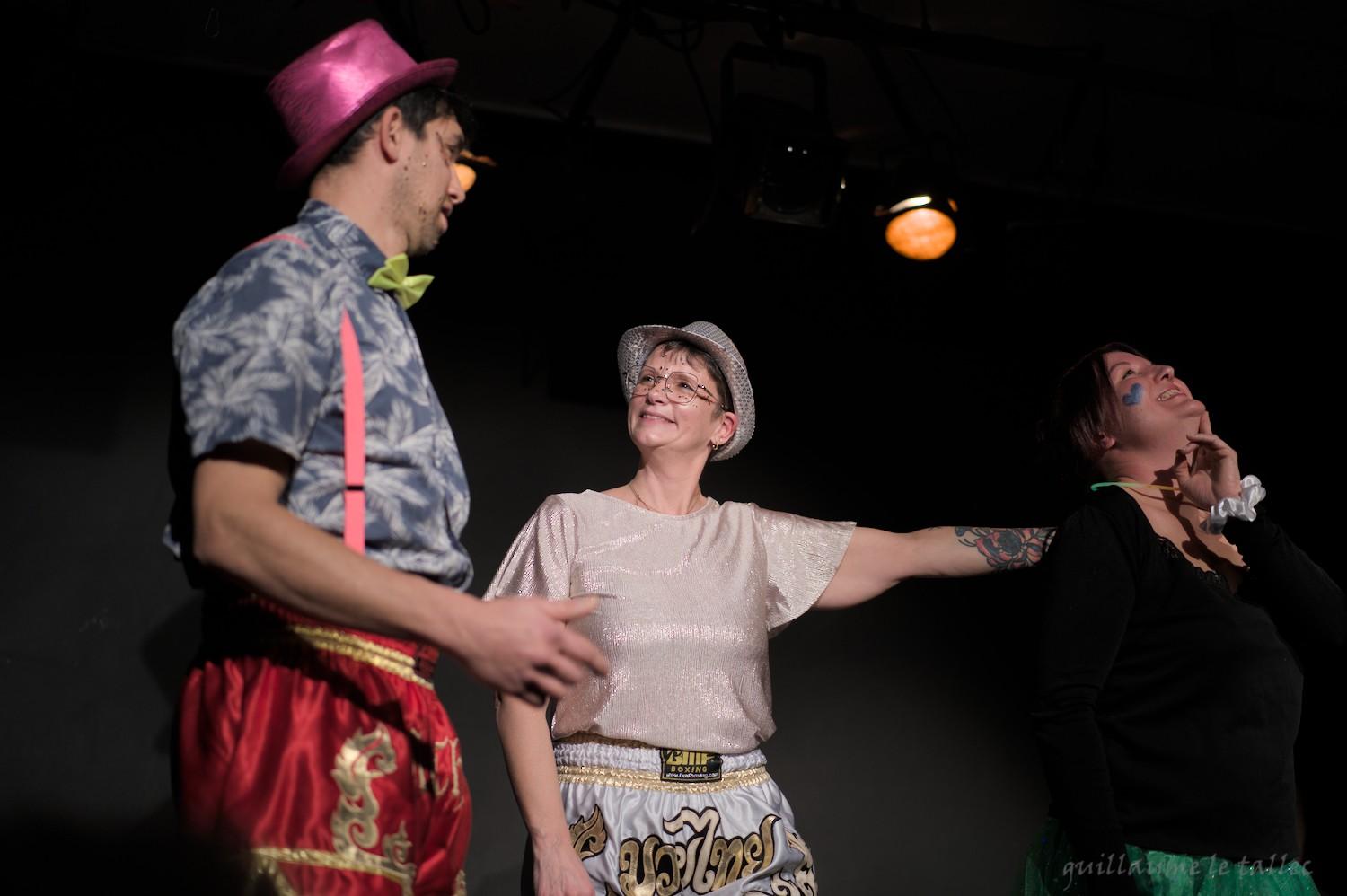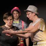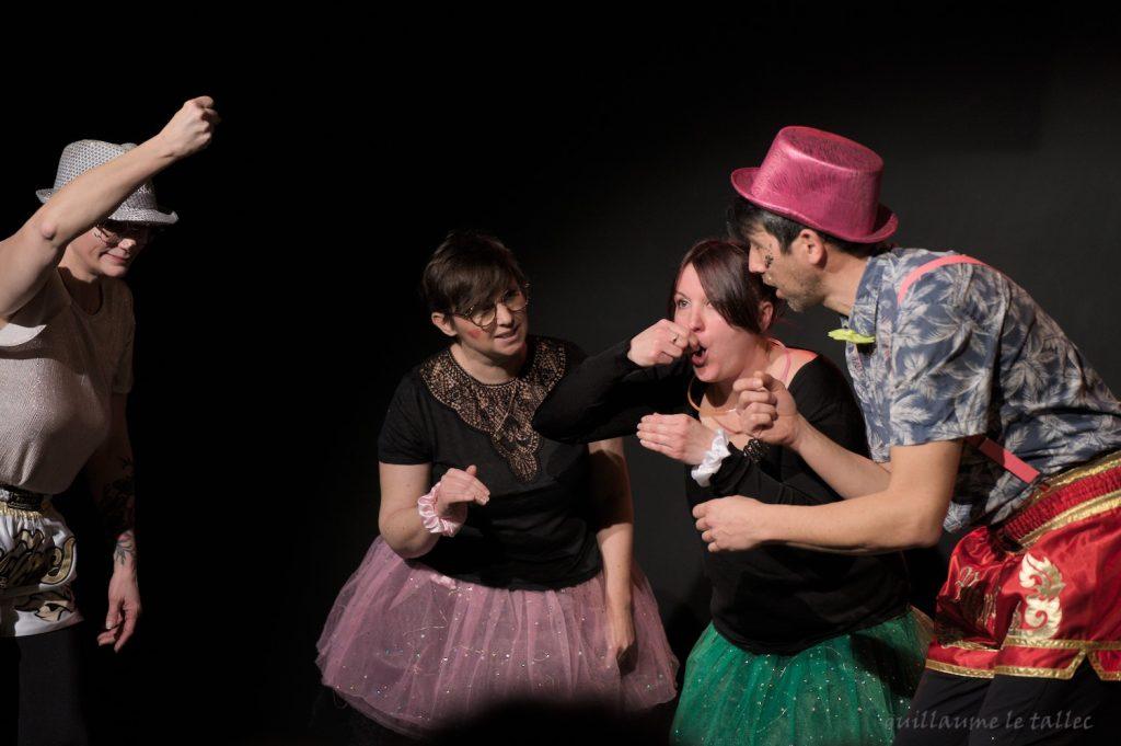 Nous avons ainsi une impro où le style est “tout sauf le son P“, dès qu’un personnage prononce le son P, il est immédiatement remplacé dans l’échange par son binôme qui doit poursuivre le fil de l’histoire. Pas facile pour les actrices et l’acteur, mais drôle pour le public !